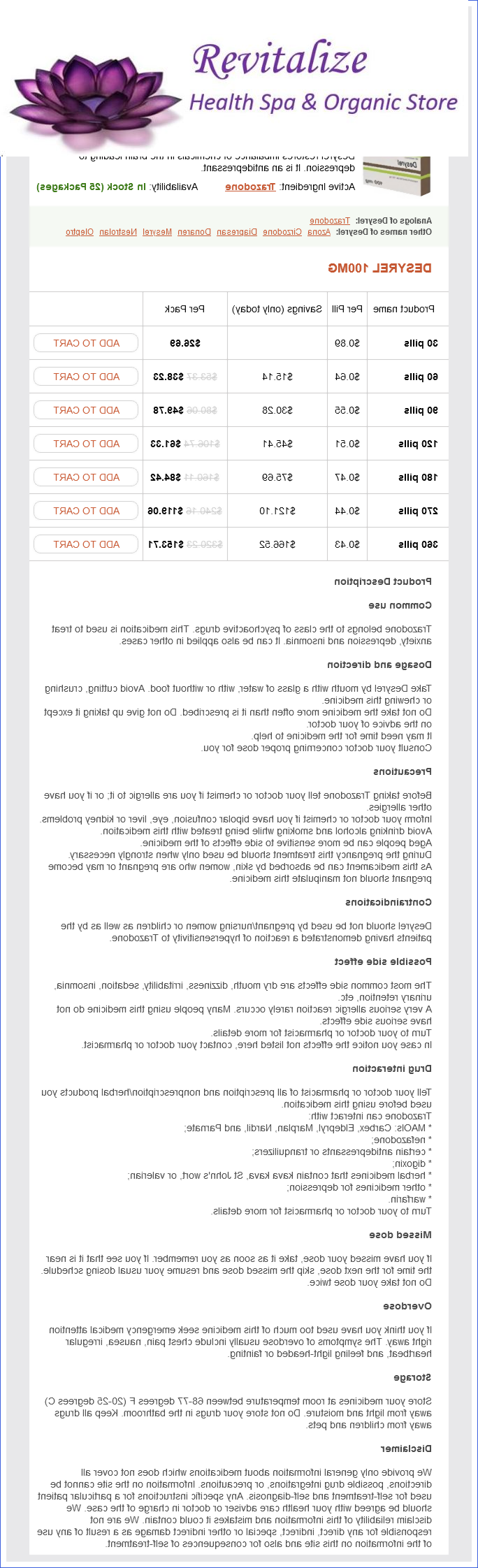 Desyrel packs: 30 pills, 60 pills, 90 pills, 120 pills, 180 pills, 270 pills, 360 pills